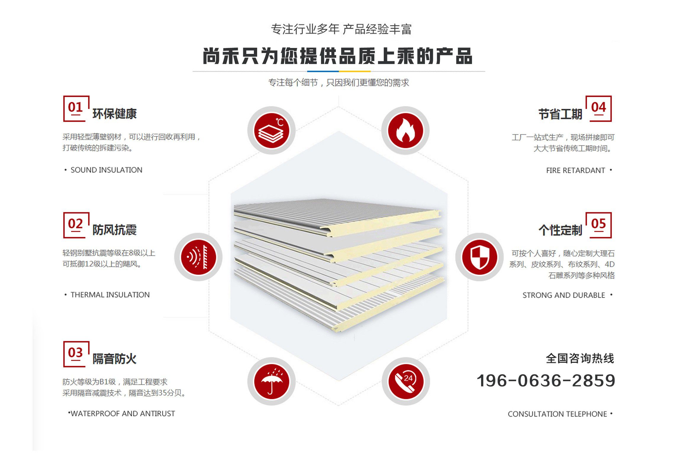 山東尚禾經(jīng)貿(mào)有限公司是集板材設(shè)計(jì)、研發(fā)、生產(chǎn)、施工、一體化的科技公司,并在同行業(yè)中率先通過了質(zhì)量、環(huán)境、安全管理體系認(rèn)證。公司2011年投入資金2000余萬元引進(jìn)世界先進(jìn)的聚氨酯節(jié)能板連續(xù)生產(chǎn)線、意大利進(jìn)口發(fā)泡系統(tǒng),采用六組份在線自動(dòng)操作混合澆注技術(shù),在線一次性完成社會(huì)配料中心或工廠的配比混合工藝,并可以根據(jù)溫度在線自動(dòng)調(diào)整,從而生產(chǎn)處與眾不同的高強(qiáng)度、節(jié)能型、綠色環(huán)保的聚氨酯夾芯板。(其使用年限高于同行業(yè)其他品牌5-10年)  公司主要經(jīng)營范圍包括聚氨酯夾芯板,PU夾芯板,冷庫板,潔凈板,聚氨酯冷庫板,冷庫保溫板的設(shè)計(jì)、生產(chǎn)、銷售、技術(shù)指導(dǎo)、安裝及一體、以及進(jìn)出口業(yè)務(wù),是中部六省最大的綠色節(jié)能建材生產(chǎn)基地。聚氨酯夾芯板年產(chǎn)200萬平方米、PU夾芯板、冷庫保溫板500萬平方米、鏈整產(chǎn)業(yè)綜合實(shí)力,開創(chuàng)了六省至中西部創(chuàng)新型中小名企總部基地,并將著力推進(jìn)中國中西部地區(qū)集成房屋住宅產(chǎn)業(yè)化發(fā)展進(jìn)程。  科技創(chuàng)新、節(jié)能典范。千萬間始終秉承“誠信、合作”的企業(yè)文化精髓,長期致力于鋼板材結(jié)構(gòu)節(jié)能建筑產(chǎn)業(yè),愿與社會(huì)各界攜手合作,共鑄綠色、環(huán)保美好未來。 產(chǎn)品具有良好的絕熱、阻燃、隔音、環(huán)保、耐久性能,可廣泛應(yīng)用于工業(yè)、商用建筑內(nèi)外墻、以及民用建筑外墻保溫、空調(diào)通風(fēng)系統(tǒng)、專用防火保溫門等領(lǐng)域。  我們始終秉承...